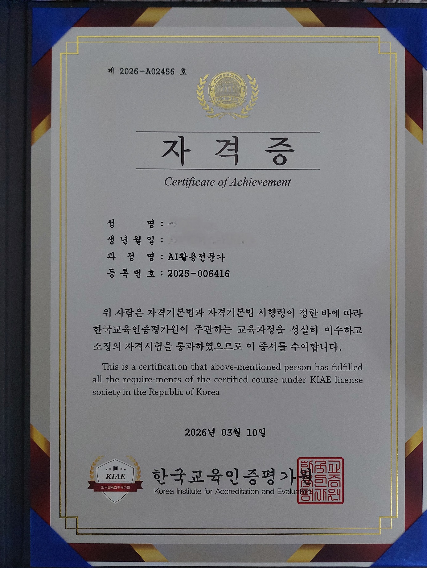 ¿äÁò AI Ȱ¿ë ´É·ÂÀÌ Áß¿äÇØÁö°í ÀÖ¾î °ü½ÉÀ» °¡Áö°Ô µÇ¾ú°í, ½Ç¹«¿¡µµ µµ¿òÀÌ µÉ °Í °°¾Æ AIȰ¿ëÀü¹®°¡ °úÁ¤À» ¼ö°ÇÏ°Ô µÇ¾ú½À´Ï´Ù.