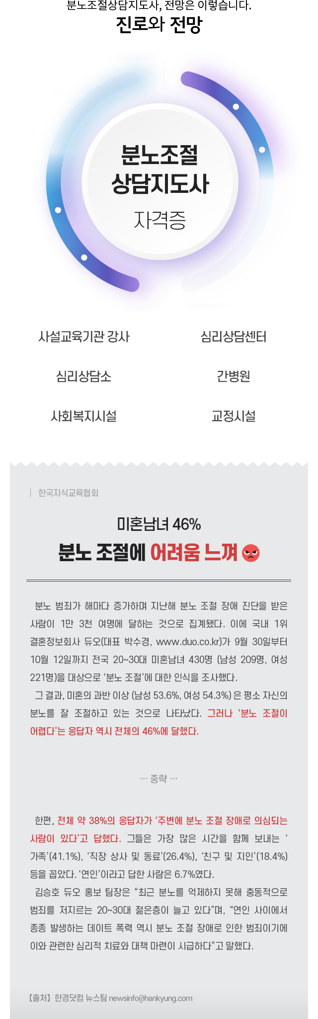 ºÐ³ëÁ¶Àý»ó´ãÁöµµ»ç Ȱµ¿À» À§ÇÑ ÀÚ°ÝÃëµæ°úÁ¤À» ÅëÇØ »ó´ãÀ̷аú Áö½ÄÀ» ½ÀµæÇϰí,°¢ ¹®Á¦À¯Çüº° »ó´ã ¿ø¸®¿Í ´Ù¾çÇÑ ±â¹ýÀÇ È°¿ë¹æ¹ýÀ» üµæ½ÃÄÑ »ó´ãÀڷμÀÇ ±âÃÊÀûÀÎ Á÷¹«¼öÇà ´É·ÂÀ» ¹è¾çÇÏ´Â °ÍÀ» ¸ñÇ¥·Î ÇÕ´Ï´Ù.