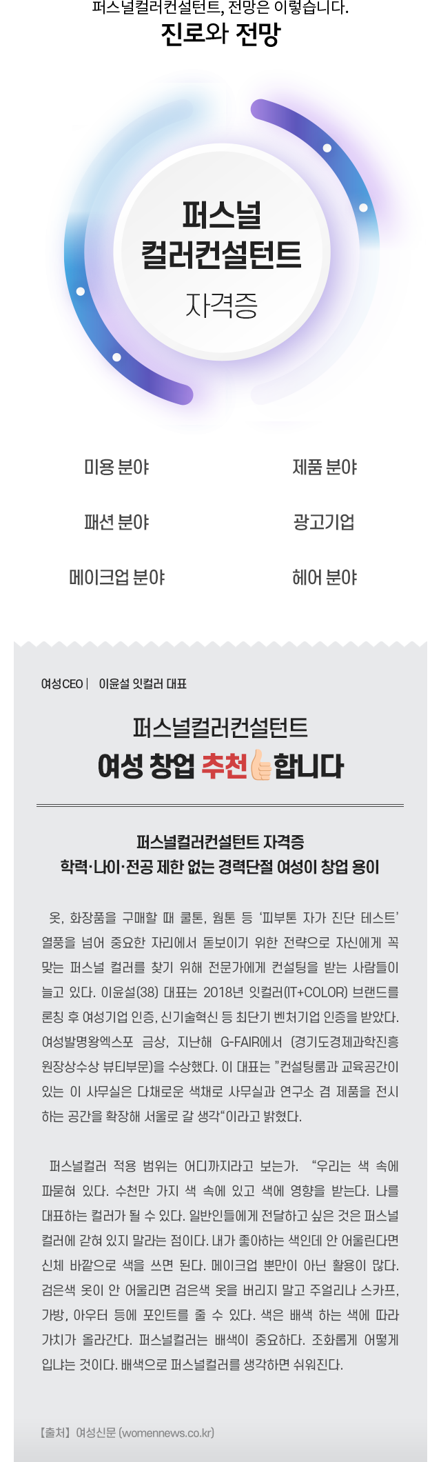 ÆÛ½º³ÎÄ÷¯ÄÁ¼³ÅÏÆ®ÀÇ ÀÚ°ÝÃëµæÀ» À§ÇÑ °úÁ¤À¸·Î »öäÇаú ÆÛ½º³ÎÄ÷¯¿¡ ´ëÇÑ Àü¹ÝÀûÀÎ ±âÃÊÁö½ÄÀ» ½Àµæ. ÀڽŰú ŸÀο¡°Ô ¾î¿ï¸®´Â Ä÷¯Áø´ÜÀ» ÇÏ¿© À̹ÌÁö¸ÞÀÌÅ·À» À§ÇÑ ÄÁ¼³ÆÃ ´É·ÂÀ» ¹è¾çÇÑ´Ù.